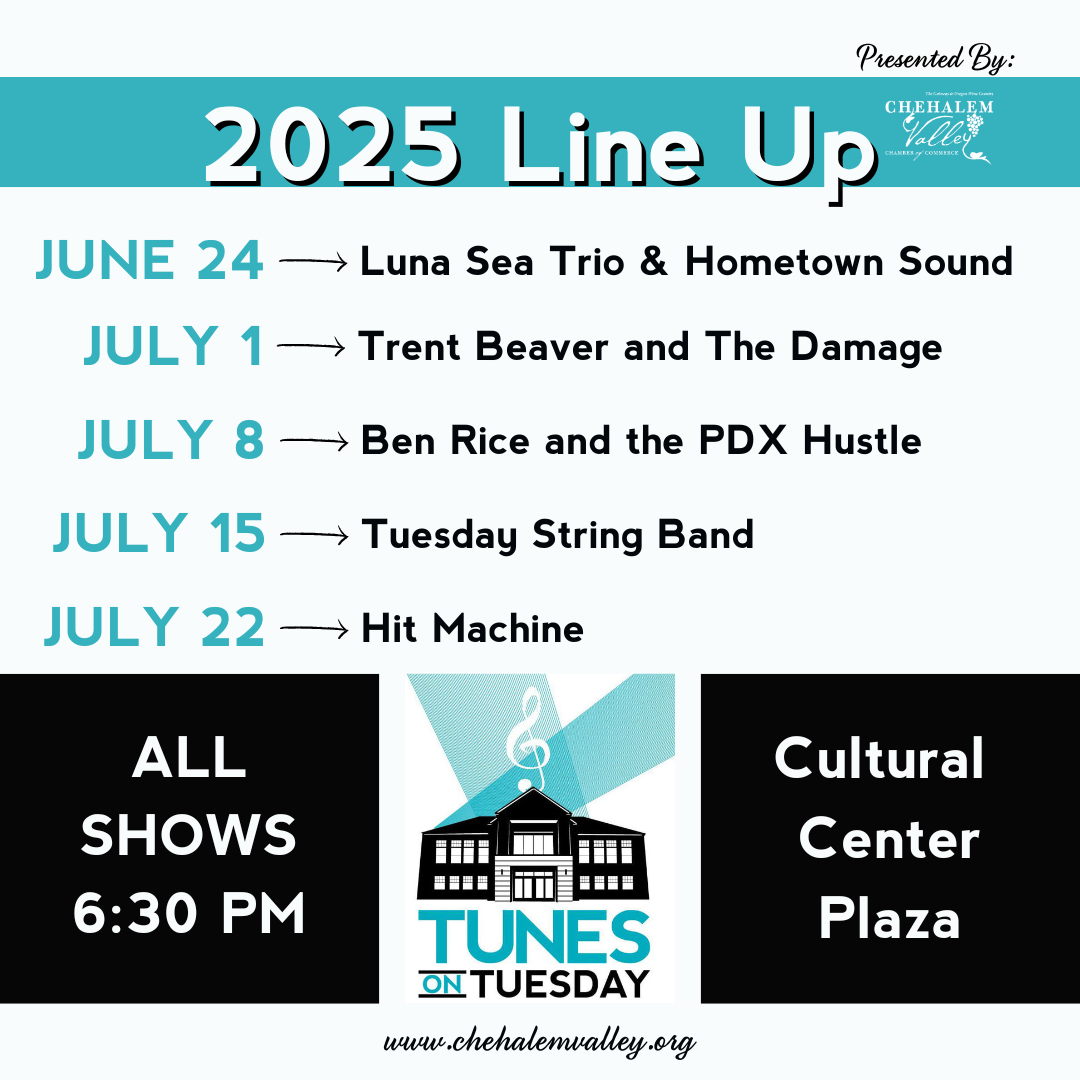 A: This event is a joint project by the Chehalem Valley Chamber of Commerce with the support of many other community partners. The group adopted Tunes on Tuesday in 2023, and we love having the opportunity to continue this awesome event here in Newberg. Thank you for your support!